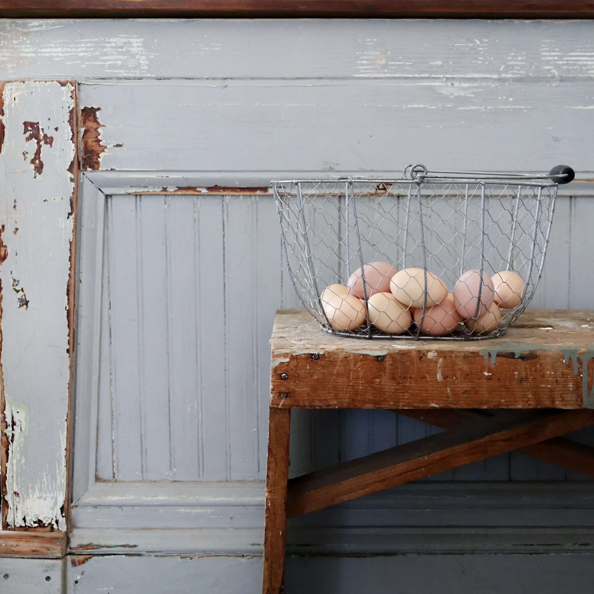 The three hens provide us with a range of brown eggs, from light beige to pink.