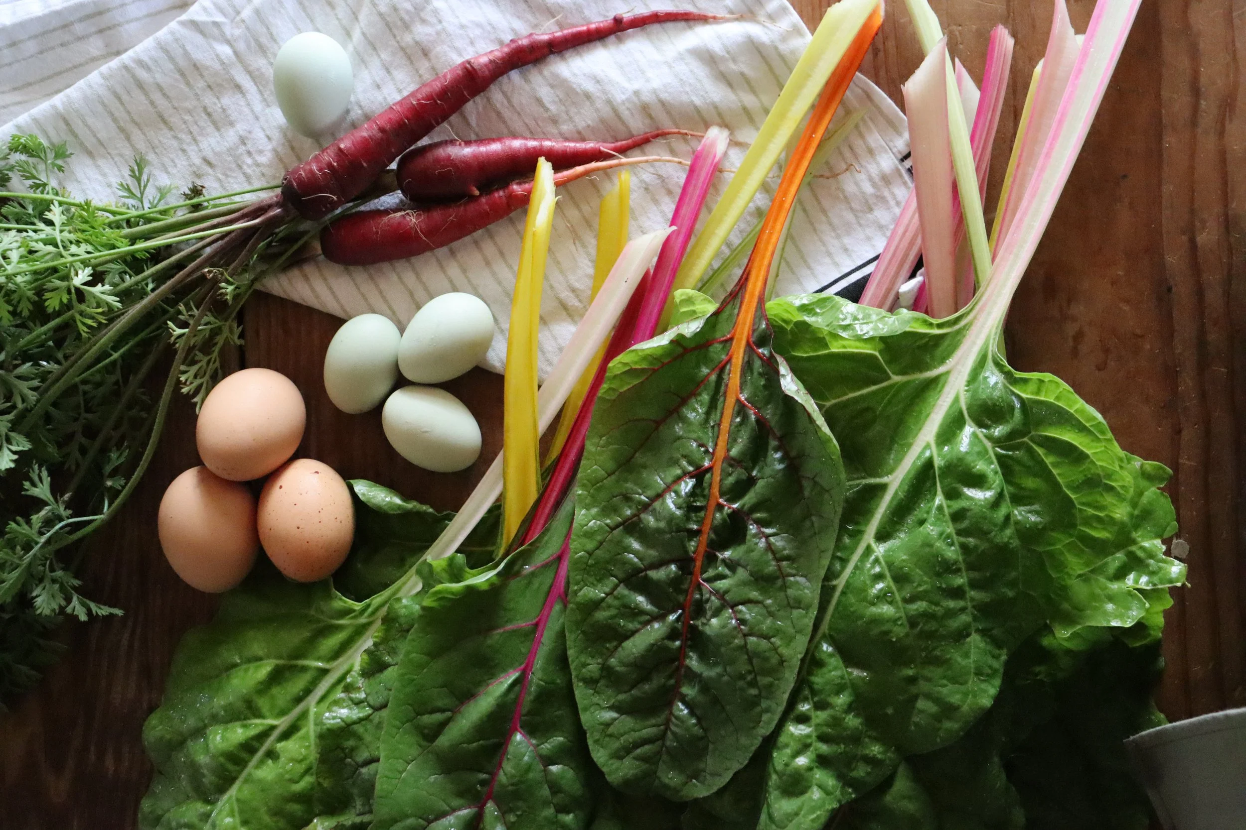 The chickens have been loving the rainbow swiss chard and the carrot greens.